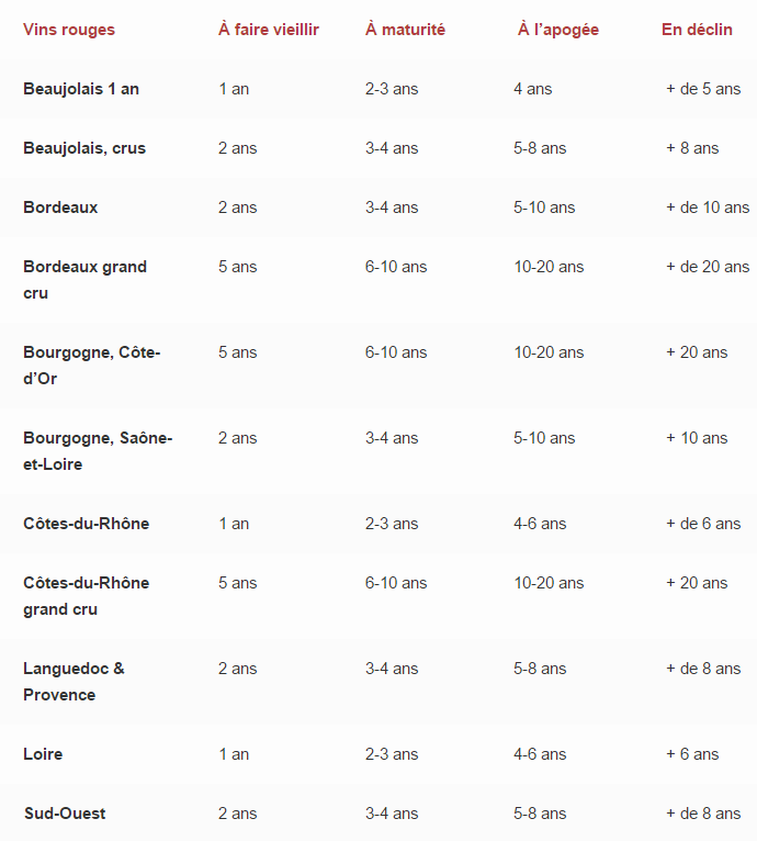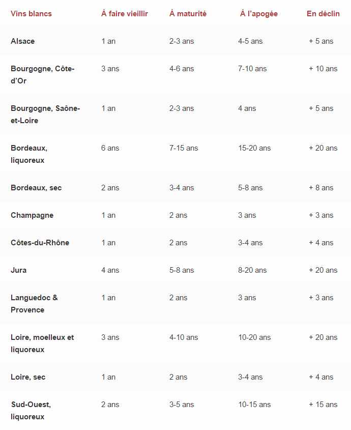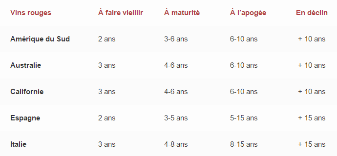 Durée de conservation pour obtenir l’apogée du vin (donner à titre indicatif, à discuter avec votre caviste) :